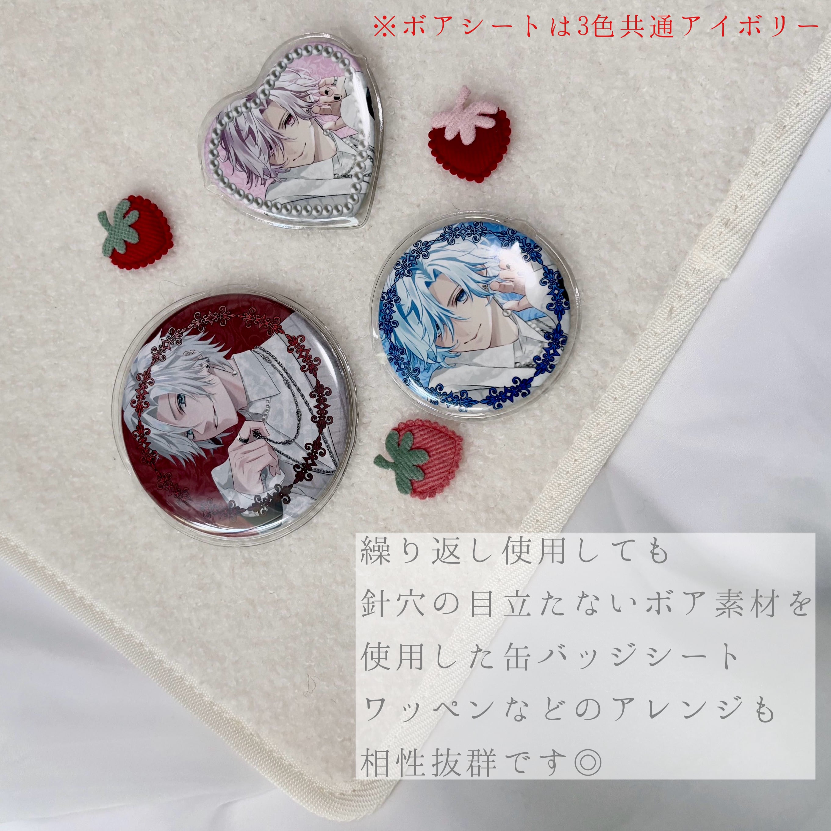 3.缶バッジなどにグッズをボアシートに取り付けてアレンジします。