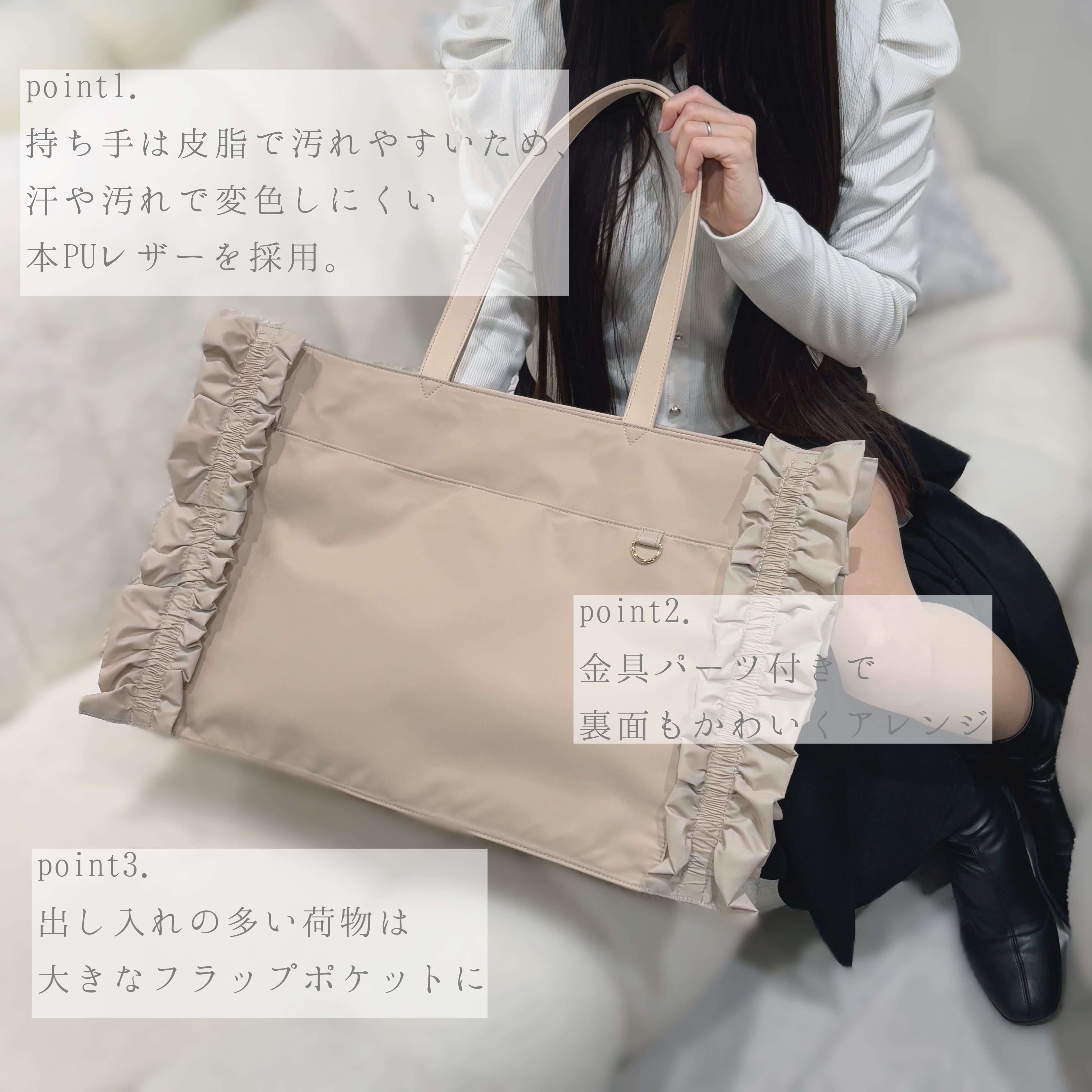 3wayフリルトートバッグ〈痛バッグ〉はシーンに応じてスタイルを自在に変えることが可能です。